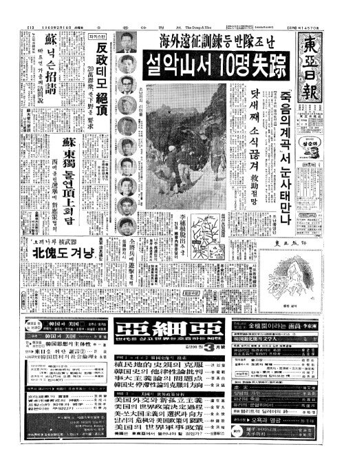 - 海外遠征訓鍊(해외원정훈련)등반隊(대)조난 설악山(산)서 10명失踪(실종)