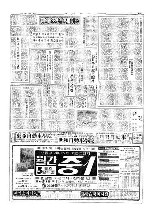 - 韓國被侵時(한국피침시)엔『支援(지원)』51% 여론調査(조사)에나타난 美(미)국민軍事觀(군사관)