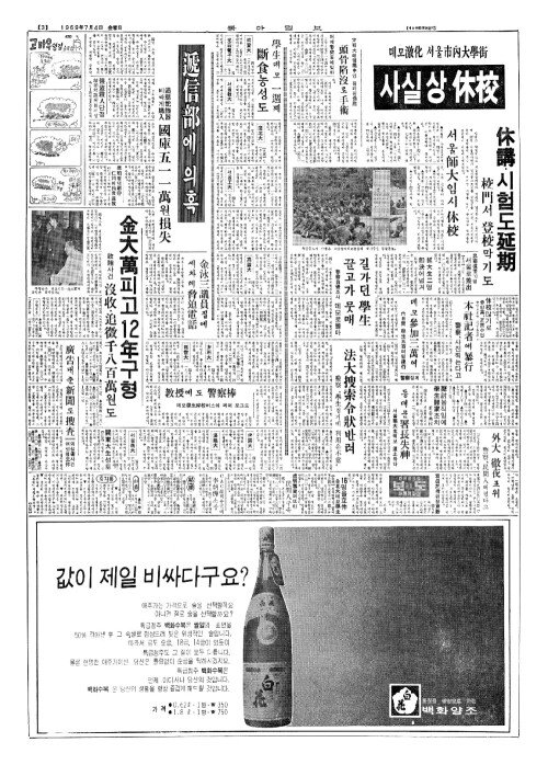 - 사실상 休校(휴교) 데모激化(격화) 서울市內大學街(시내대학가)