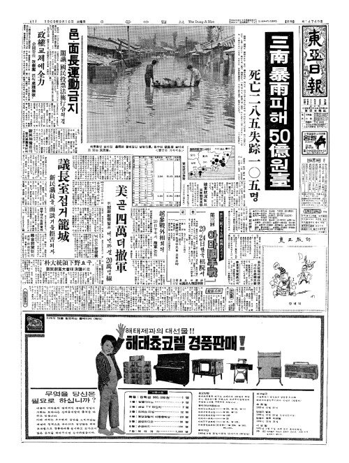 - 三南(삼남) 暴雨(폭우)피해 50億(억)원臺(대)