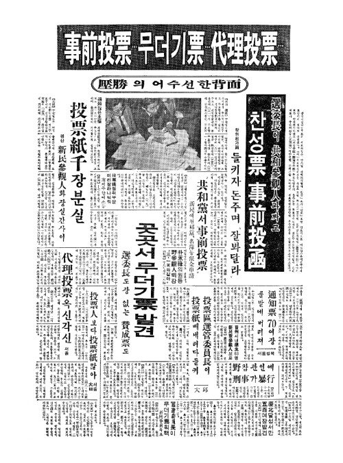 - 住民證(주민증)없이 記票(기표)허용에격분 投票紙(투표지)뺏고 종사원 때려