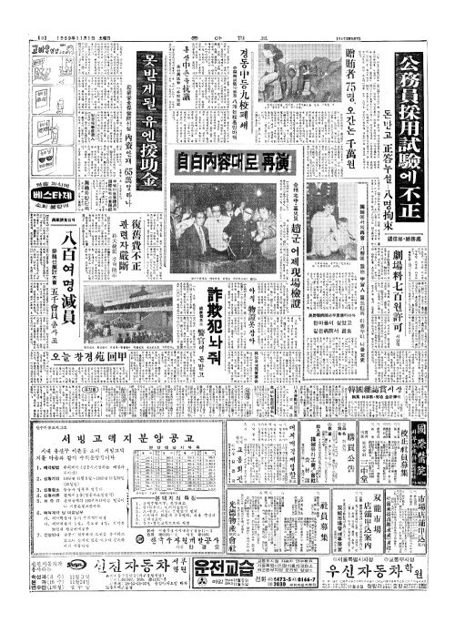 - 遞信部(체신부)·總務處(총무처) 公務員採用試驗(공무원채용시험)에不正(부정)