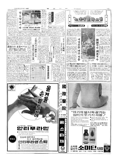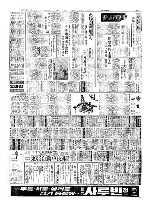 - 氣溫急降下(기온급강하) 湖南(호남)에또큰눈 서울零下九度(령하구탁)