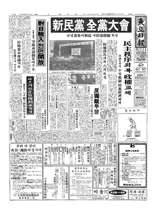 - 俞總裁(수총재)치사 "反獨裁(반독재)투쟁 完快(완쾌)되면民主隊列(민주대렬)에"