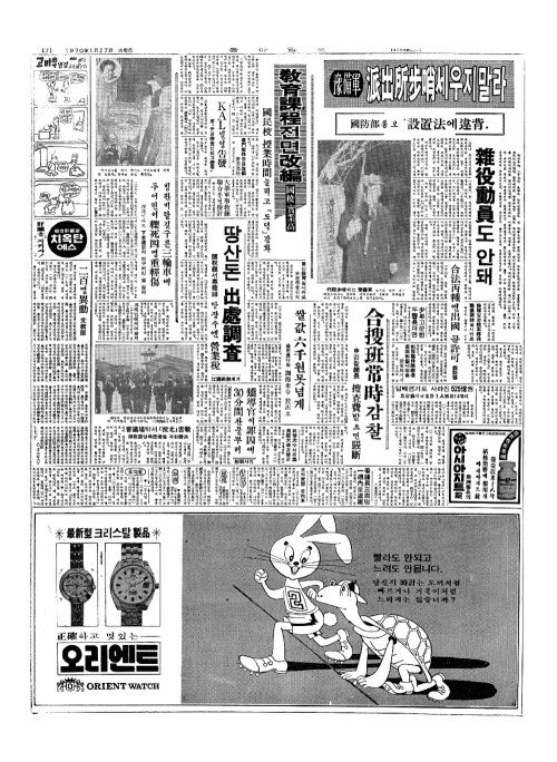 - 美誌報道(미지보도) 駐韓軍(주한군)철수檢討(검토) 美(미)、二個師(이개사) 越終戰(월종전)후 점차로