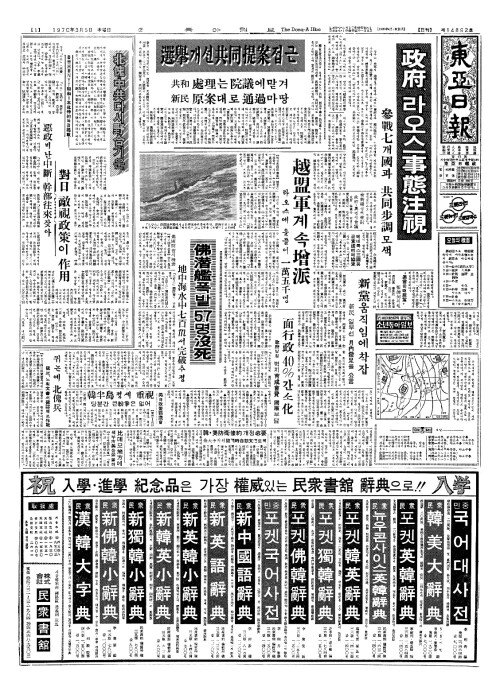 - 越盟軍(월맹군)계속增派(증파) 라오스에 올들어 一萬五千(일만오천)명