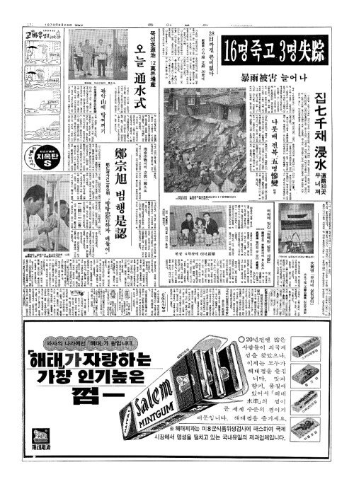 - 暴雨被害(폭우피해) 늘어나 16명죽고3명失踪(실종)
