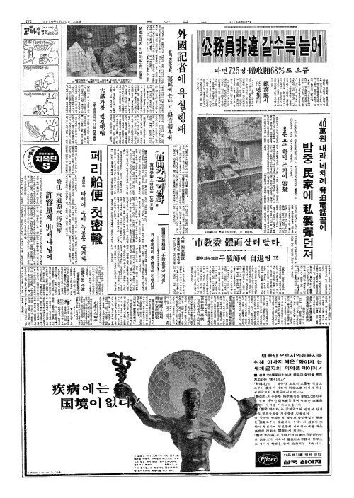 - 公務員非違(공무원비위) 갈수록 늘어 파면725명·贈收賄(증수회)68%로 으뜸 總務處(총무처)서 69년集計(집계)