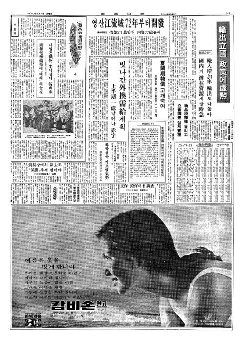 - 農林部(농임부)결정 借款(차관)2千萬(천만)달러 内資(내자)77億(억)들여 영산江流域(강류역)72年(년)부터開發(개발)