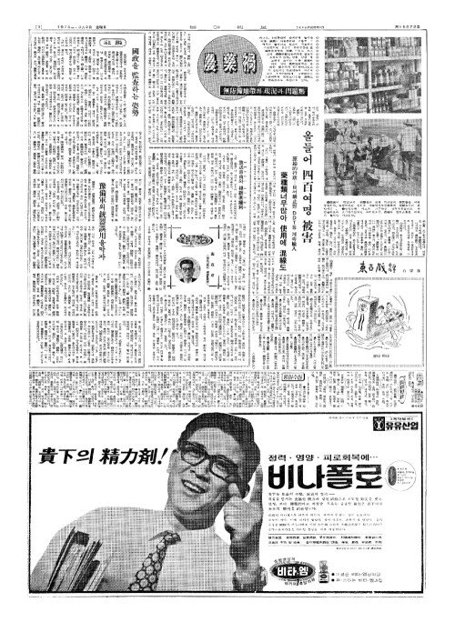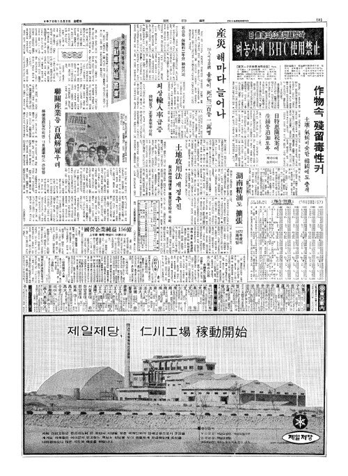 - 日(일) 農藥(농약)의公害問題(공해문제)심각 벼농사에 BHC使用禁止(사용금지)