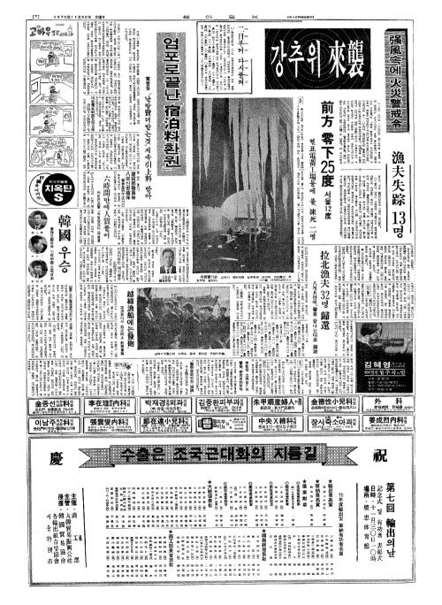 - 강추위 來襲(래습) 强風(강풍)속에 火災警戒令(화재경계령)