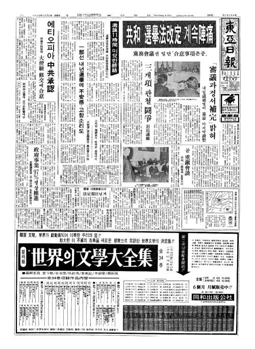 - 共和(공화)「選擧法改定(선거법개정)」계속陣痛(진통)
