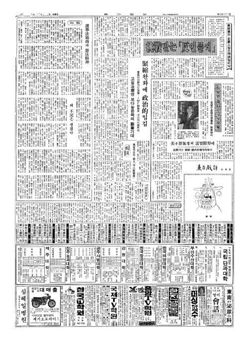 - 共和(공화)、一部條項(일부조항) 절충모색 곧 重鎭會談(중진회담)