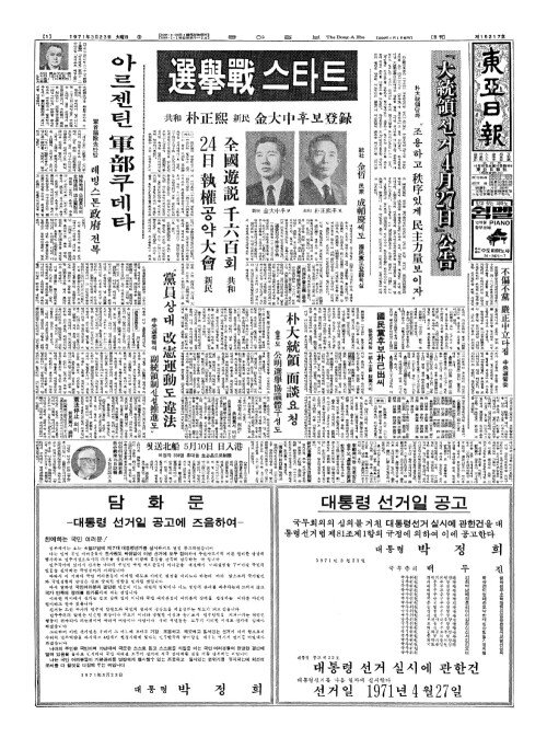 - 朴大統領(박대통령)담화「大統領(대통령)선거4月(월)27日(일)」公告(공고)