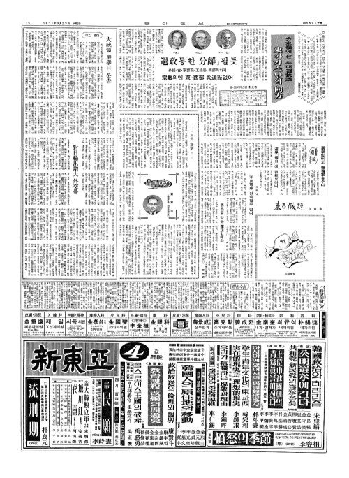 - 本社招請(본사초청)으로 런던타임즈紙社長(지사장) 톰슨卿來(경래)15日訪韓(일방한)