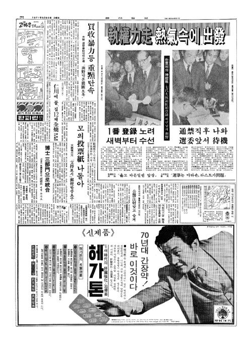 - 李範奭(리범석)씨등 元老(원로)방문 金(김)후보、選擧(선거)협조要請(요청)