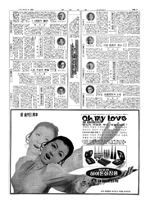 - 本報創刊(본보창간)51周(주) 12면發行(발행)