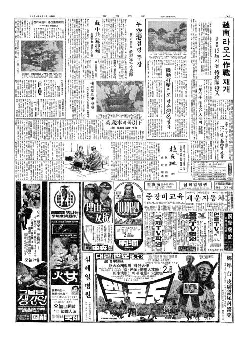 - 티우發表(발표) 越南(월남)、라오스作戰(작전) 재개