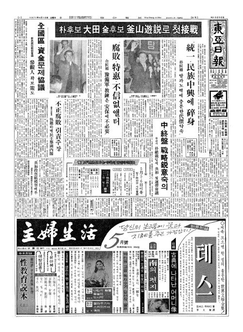 - 金候補(김후보) "腐敗(부패)·特惠(특혜)·不信(부신)없앨터 豫備軍(예비군)·教鍊(교련)은 安保(안보)에不必要(부필요)"