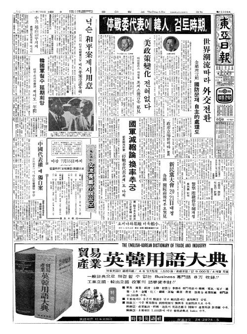 - "「停戰委代表(정전위대표)에 韓人(한인)」검토·時期(시기)"