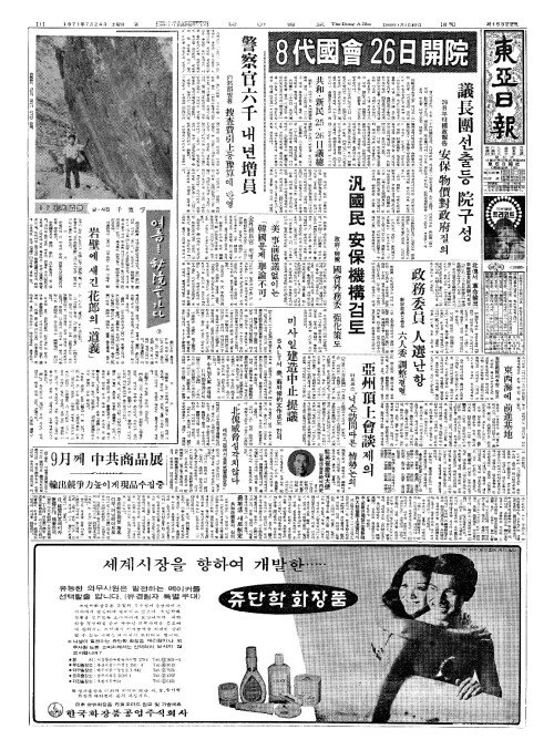 - 内務部(내무부)방침 警察官六千(경찰관륙천) 내년増員(증원)