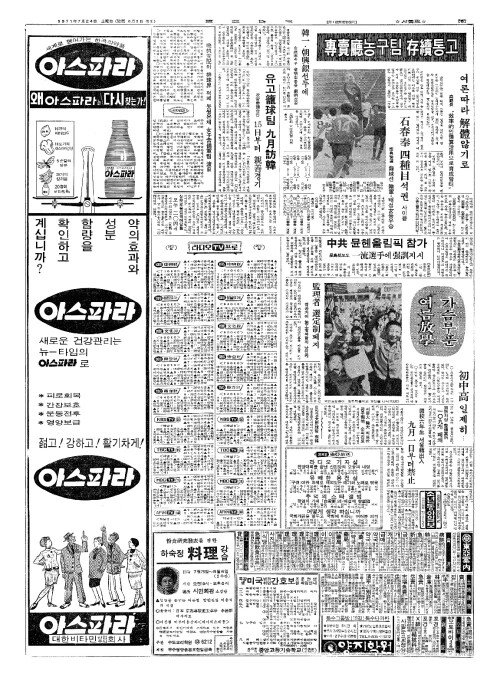 - 次官會議(차관회의)승인 유고籠球(롱구)팀 九月訪韓(구월방한)