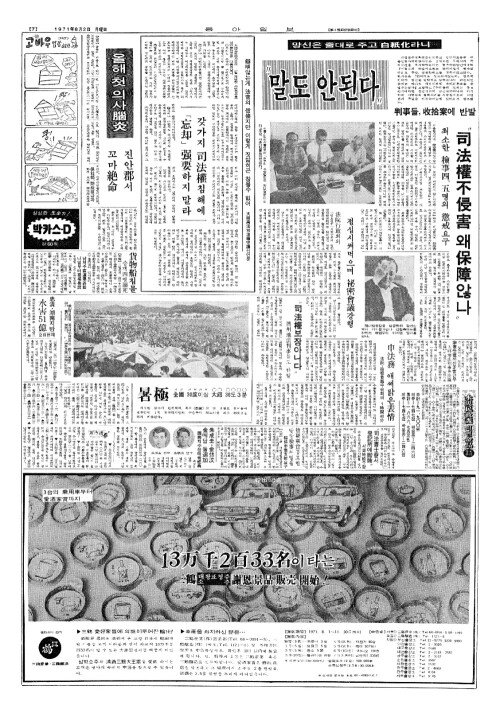 - 朴大統領(박대통령)방침 「判事(판사)독직」白紙化(백지화)·처리 一任(일임)