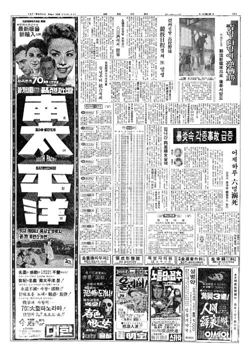 - 束草(속초)에 暴雨一六五(폭우일륙오)㎜ 釜山(부산)선 ???水浴禁止令(수욕금지영)