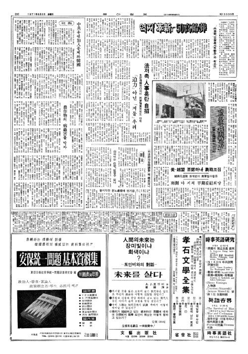- 美(미)의 全面(전면)휴전案(안)거부 빠리會談(회담) 越盟(월맹)대표