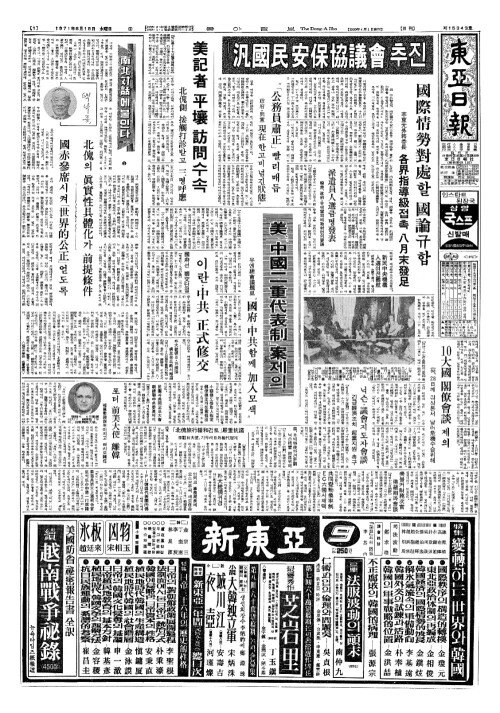 - 유엔總會議題(총회의제)로 美(미)、「中國二重代表制(중국이중대표제)」案(안)제의