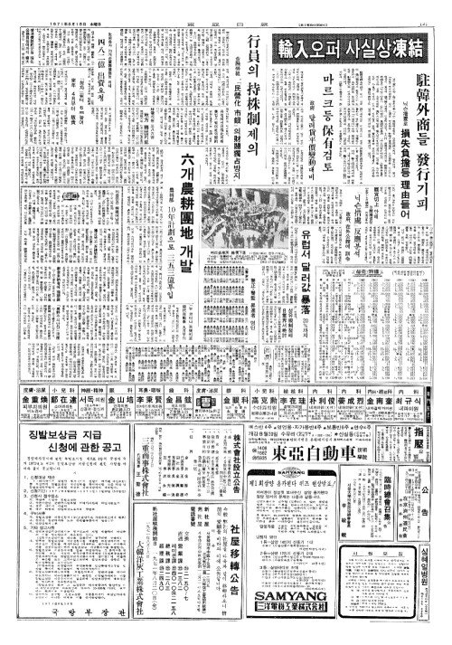 - 政府(정부)출자 20개企業體擴張(기업체확장)등 위해