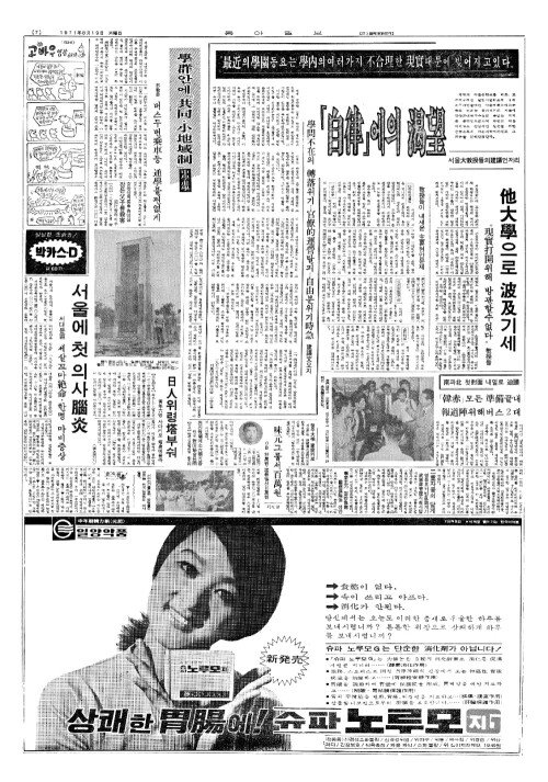 - "最近(최근)의學園(학원)동요는 學内(학내)의여러가지 不合理(부합리)한 現實(현실)때문에 빚어지고있다"
