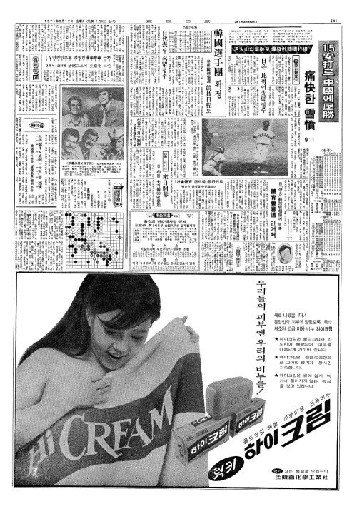 - 9회 亞州野球(아주야구) 15安打(안타)로 中國(중국)에壓勝(압승)