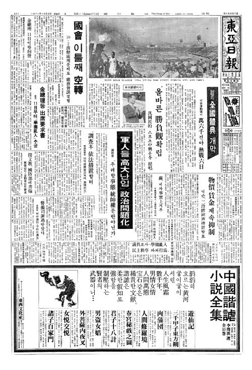 - 서울運動場(운동장)서 52회 全國體典(전국체전) 개막