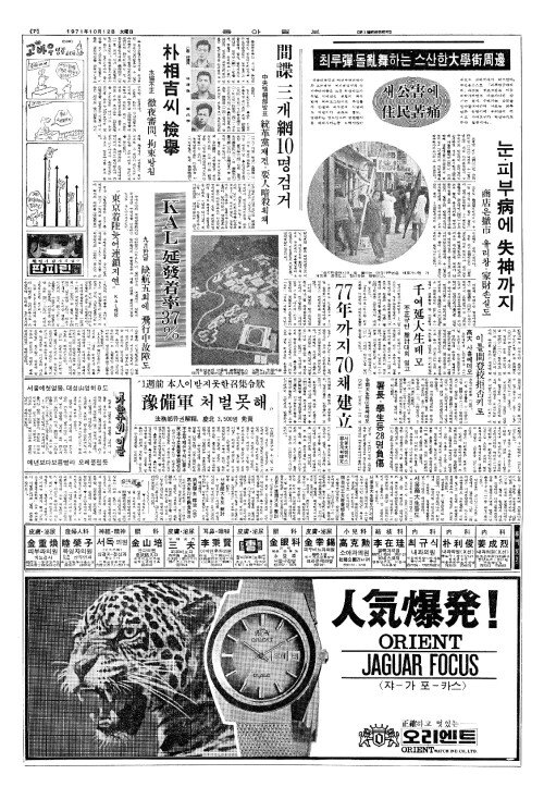 - 새 公害(공해)에 住民苦痛(주민고통) 최루彈(탄)·돌亂舞(란무)하는 스산한大學街周邊(대학가주변)
