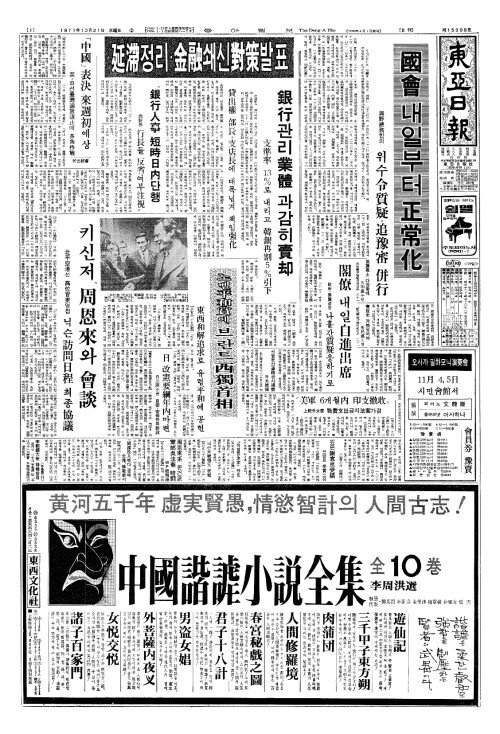 - 北平空港(북평공항)선 高位官吏(고위관리)영접 키신저、周恩來(주은내)와 會談(회담)