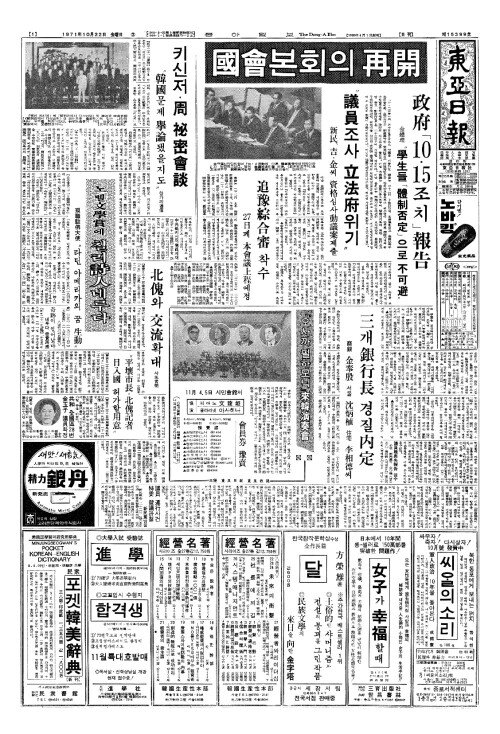 - 新民黨(신민당)방침 議員(의원) 連行(연항)사건 特委(특위) 發議(발의)관철