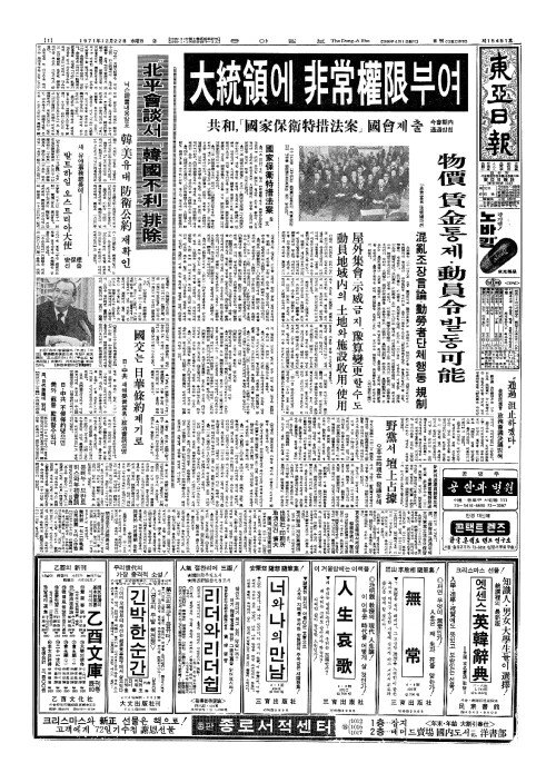 - 内務部(내무부) 全國(전국)에 非常治安令(비상치안령)