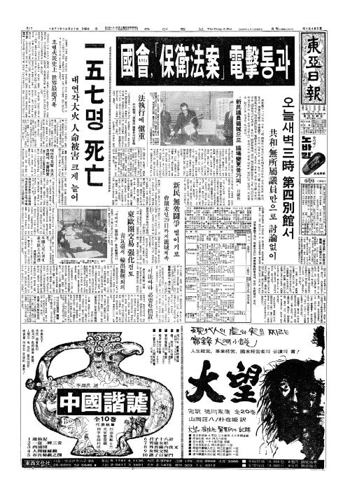 - 대연각大火(대화) 人命被害(인명피해) 크게 늘어 一五七(일오칠)명 死亡(사망)