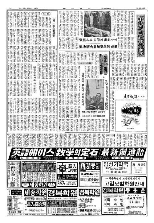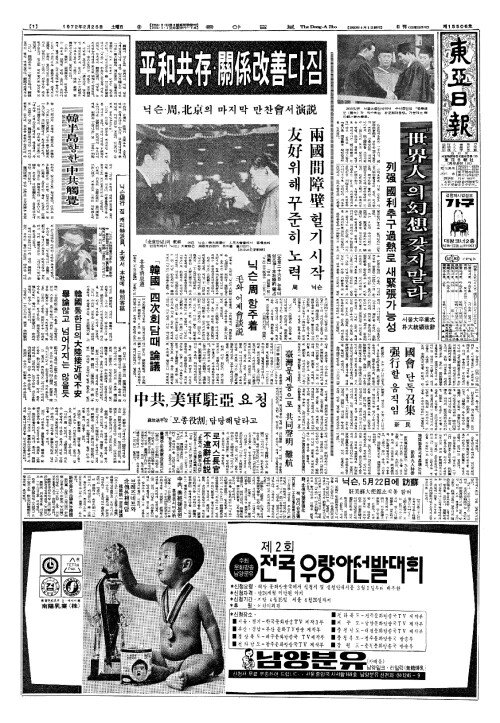 - 닉슨 周(주) 五次(오차)회담 臺灣(대만)문제등으로 共同聲明(공동성명) 難航(난항)