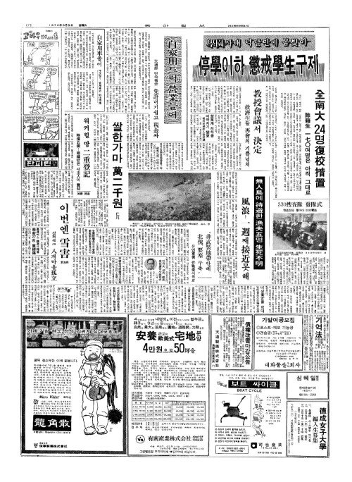 - 學園(학원)사태 넉달만에 봄빛이… 停學(정학)이하 懲戒學生(징계학생)구제