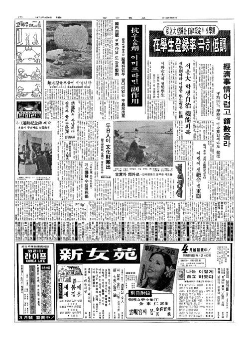 - 私立大(사입대) 登録金(등녹김) 自律策定(자률책정)후 첫學期(학기) 在學生登録率(재학생등녹솔) 극히低調(저조)