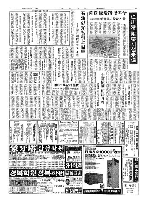 - 仁川港(인천항) 附帶(부대)시설未備(미비)