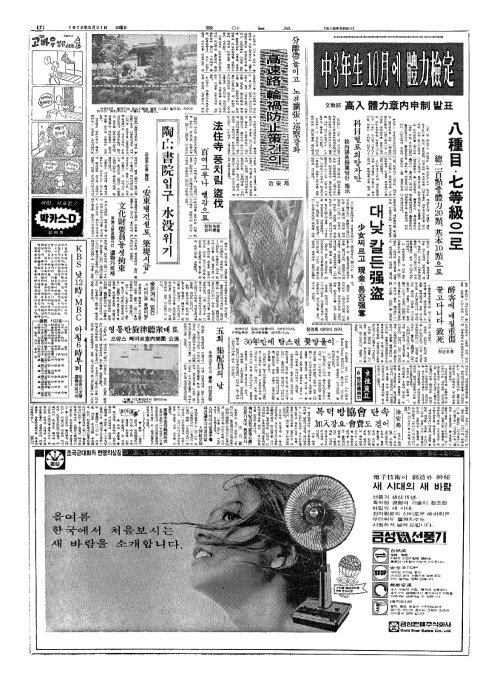 - 東亞放送(동아방송)의「뉴스퍼레이드」저녁에서 아침 八時(팔시)로 옮겨