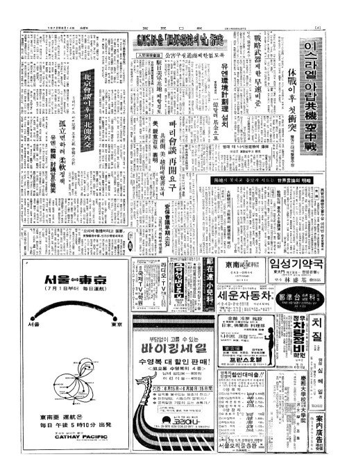 - 美(미)、銳意(예의)검토 表明(표명) 共産側(공산측)、美(미)·越南(월남)에覺書(각서)보내 빠리會談(회담) 再開(재개)요구