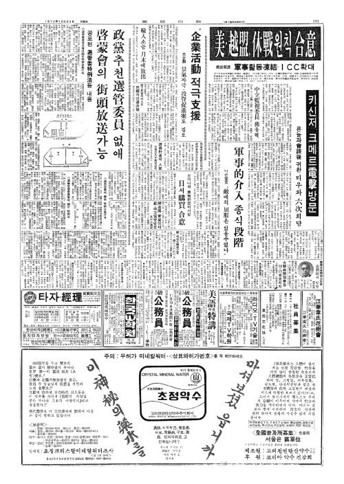 - 美(미)·越盟(월맹),休戰(휴전)원칙 合意(합의)