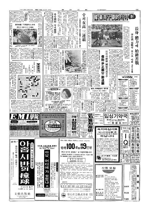 - 23日(일)부터 서울運(운)서 中學一(중학일)·二年(이년)연식庭球(정구)