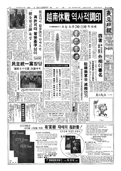 - 越南休戰(월남휴전) 역사적調印(조인)