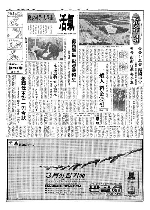 - 데모관련學生(학생) 구제되던날 傷處(상처)아문 大學街(대학가) 活氣(활기)