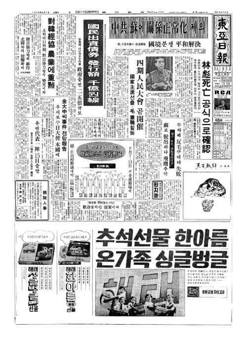 - 周(주),十全大會(십전대회)서 政治報告(정치보고) 中共(중공),蘇(소)에關系正常化(관계정상화) 제의